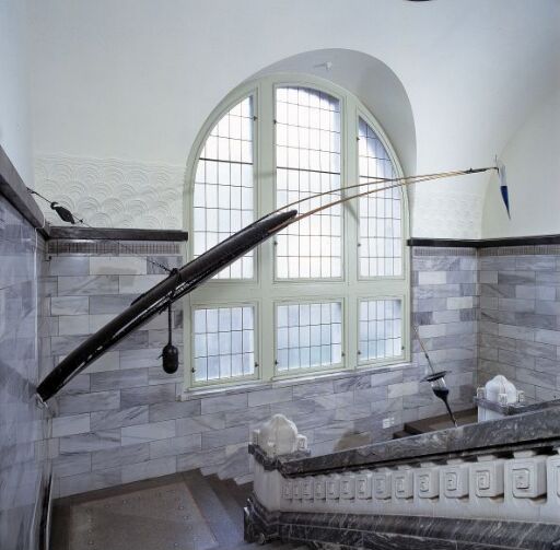 When the public first entered the newly opened Museum of Contemporary Art in Oslo in January 1990, they were greeted by a piercing shriek from Gilberto Zorio’s mechanical sculpture Untitled (Canoe). The work, which was specifically created for the opening, hung as a somewhat menacing, parabola-shaped arm in the museum’s stairway. At the same time, the work exuded the buoyant elegance that typifies many of Zorio’s sculptures, whether because they resist the pull of gravity by hanging on wires or because they are delicately frail – like Stella, a five-pointed star made of steel javelins that the museum also had acquired for the opening.