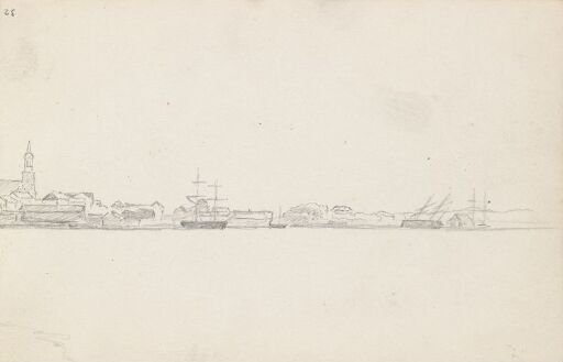 Tønsberg Artist: Hans Gude Creation date: 2. august (1872) Object type: Drawing Not on display Artist/producer Hans Gude Visual artist, Painter Born 1825 in Oslo, death 1903 in Berlin, Tyskland Depicted place Work info Creation date: 2. august (1872) Other titles: Tønsberg (NOR) Object type: Drawing Materials and techniques: Blyant på papir Material: Paper Dimensions: Height: 120 mm Width: 188 mm Keywords: Visual art Classification: 532 - Bildende kunst Motif - type: City prospect Motif - location: Tønsberg Inventory no.: NG.K&H.B.06522-016VERSO Cataloguing level: Single object Acquisition: Kjøpt 1907 med midler fra Houens fond Owner and collection: Nasjonalmuseet for kunst, arkitektur og design, The Fine Art Collections Photo: Therese Husby "Tønsberg" relates to: Skissebok nr. 12 Ny-Hellesund Related works Hans Gude Drawing 2. august (1872) Båt på Mjøsa Figur i landskap Fra dekket på dampbåten "Vesta" Fra Engøy Herm of a god Napoli, Panorama dal Vomero Parti fra Brigsdalsbræen. Olden i Nordfjord Parti fra Balestrand i Sogn Ovnskjerm Figure Study of the Farmer Florian Killian. Sittende gutt som tar av seg skoen Landskapsriss