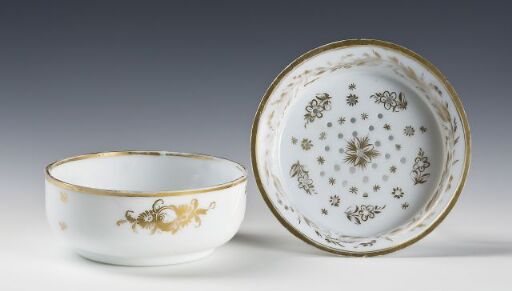 Bowl Artist: Uidentifisert Creation date: Ca. 1830 Object type: Bowl Not on display Work info Creation date: Ca. 1830 Object type: Bowl Materials and techniques: Dreid porselen, dels perforert, gullstaffasje Dimensions: Diameter: 13 cm Height: 6 cm Keywords: Tableware Classification: 323 - Keramikk- og glassproduksjon 415 - Kar og beholdere Production place: Europa Inventory no.: OK-14877 Cataloguing level: Group Acquisition: Gift 1957 Owner and collection: Stiftelsen Kunstindustrimuseet, The Design Collections Photo: Anne Hansteen Related works Uidentifisert Bowl Ca. 1830 Utsikt med kirketårn Måke To fugler To måker Fra Bayern Sagmølle i Golling Karaffel Chair Navneduk Alpine Landscape Chair Chair