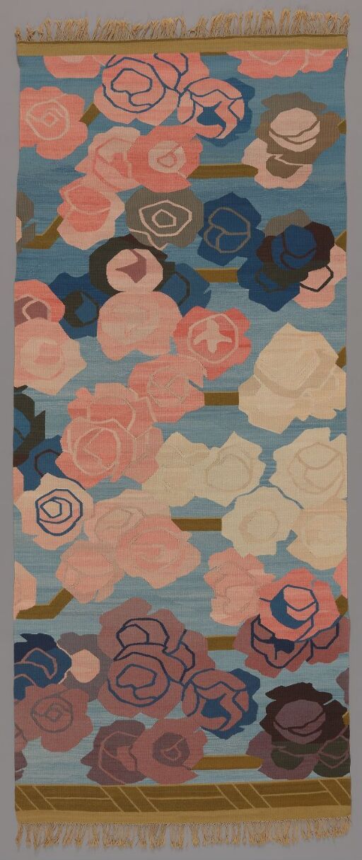 Røde roser original title Artist: Frida Hansen Creation date: 1899 (mønster) / 1900 (vevnad) Object type: Portiere On display: Room 026 The Collection Exhibition - Art enters everyday life Artist/producer Frida Hansen Tapestry maker, Textile artist Born 08.03.1855 in Stavanger, death 12.03.1931 in Oslo Work info Creation date: 1899 (mønster) / 1900 (vevnad) Other titles: Røde roser (NOR) Object type: Portiere Materials and techniques: Billedvev i gobelinteknikk med bomullsgarn i renningen og ullgarn i innslaget Material: Saueull Bomull Dimensions: Width: 119.5 cm Height: 297 cm Keywords: Textile Arts and crafts Classification: 286.3 - Veving 353.2 - Gardiner, draperier, skjermer 531.2 - Tekstil kunsthåndverk 531.25 - Billedvev Motif: Flora Production place: Oslo Inventory no.: OK-1987-0021 Cataloguing level: Single object Part of exhibition: Frida Hansen. Europeeren i norsk vevkunst, 1973 Acquisition: Bequeathed 1987 Owner and collection: Stiftelsen Kunstindustrimuseet, The Design Collections Photo: Larsen, Frode Related works Frida Hansen Portiere 1899 (mønster) / 1900 (vevnad) Portrait of Valborg Nicolaysen, the Artist's Sister In the Sun Night in Montigny-sur-Loing Manor outside Holmestrand Bord Bekkeblom From Kviteseid in Telemark Taklampe Baluster Bårdshaug Bord, Magnus Barfots saga Helfart; vintersolen