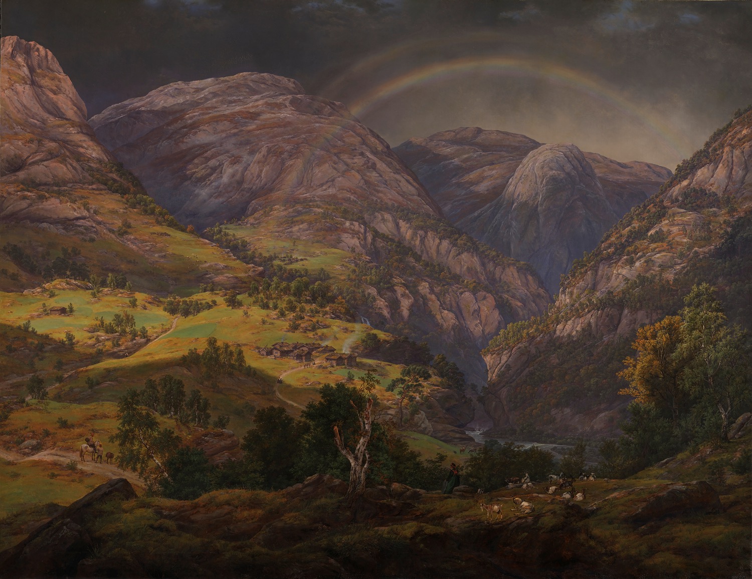 For us today, it’s easy to get lost in a daydream. We may search in the painting for a path up to the high mountains, thinking about hiking boots, plasters for blisters, and a thermos of coffee. And this means that we look at the landscape in a different way than both Dahl and the people we see in the painting.