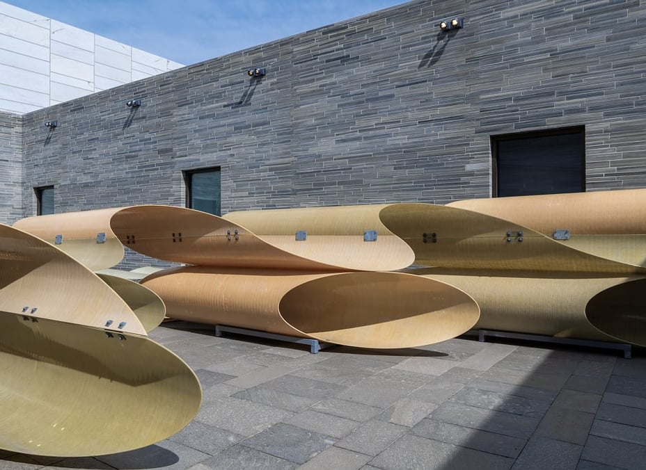 Although Aurdal's playful work Wavelengths Recomposed is both an artwork and a climbing frame, climbing on this particular sculpture is not allowed. There is nothing to stop you playing on it in your imagination, however.