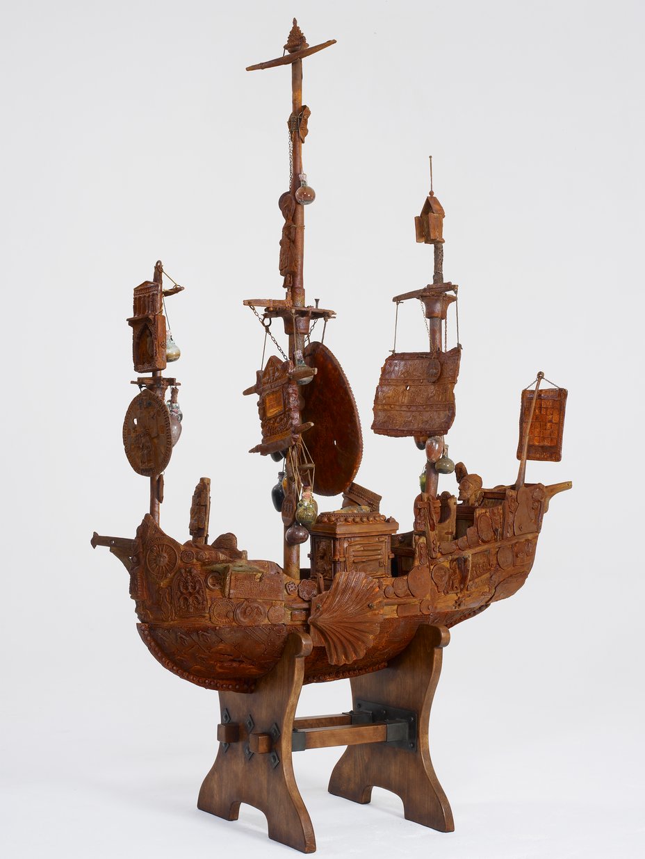 It's a ship. It's about 2 metres long and three metres high, and it's made of pretty much all of it of cast iron. And I chose cast iron.