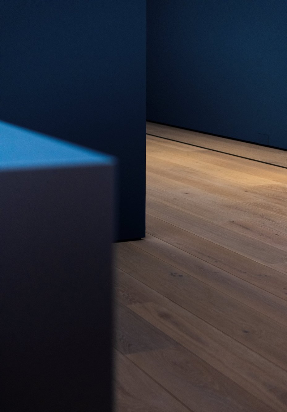 But when you enter the exhibition areas, you find a beautiful oak floor. This floor came from oak forests in Germany. The timber was processed in Denmark, and here the architect has chosen to lay floorboards of varying widths. The boards are solid wood, of course, which means they can be sanded. As long as they are well looked after, they will last forever.
