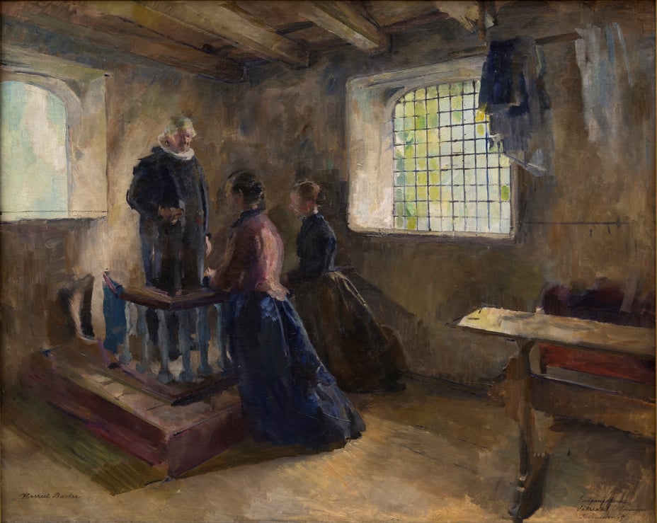 Tradisjonen døydde ut tidleg på 1900-talet, men her i Inngangskoner ser vi nettopp denne stunda der to kvinner er i ferd med å få velsigninga si.