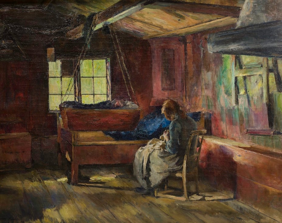 Bilde: Harriet Backer, «Ved hengevuggen», 1898