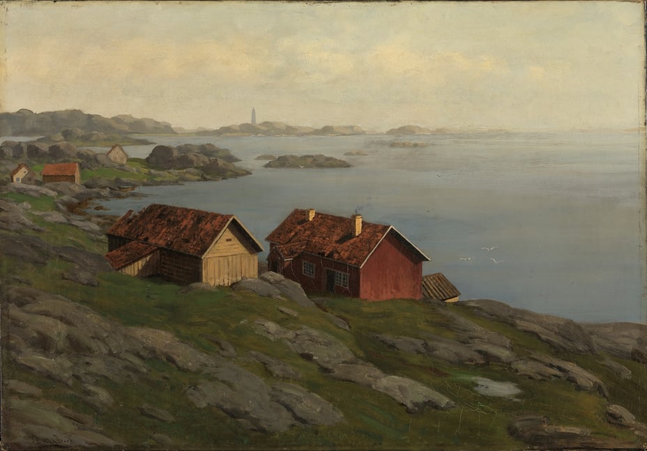 Maleriet Kystlandskap er et av hennes tidligste kjente bilder, og motivet er antagelig hentet fra Helgelandskysten. Trehusene i morgendis står i kontrast til de ekstreme omstendighetene som kunstneren senere ofte arbeidet under – av og til sittende i en spesiallaget trekasse, som beskyttelse for vær og vind.