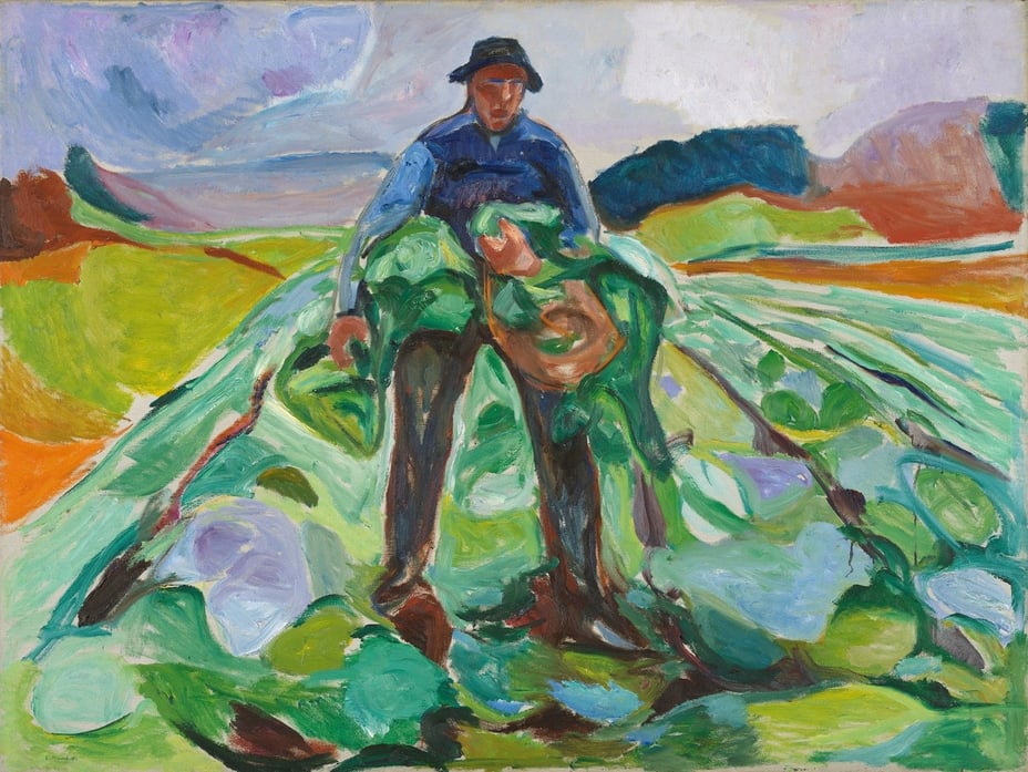 Med kraftfulle penselstrøk og sterke farger er dette en hyllest til den selvdyrkende bonden og hverdagssliteren - som Munch både respekterer og fascineres av.