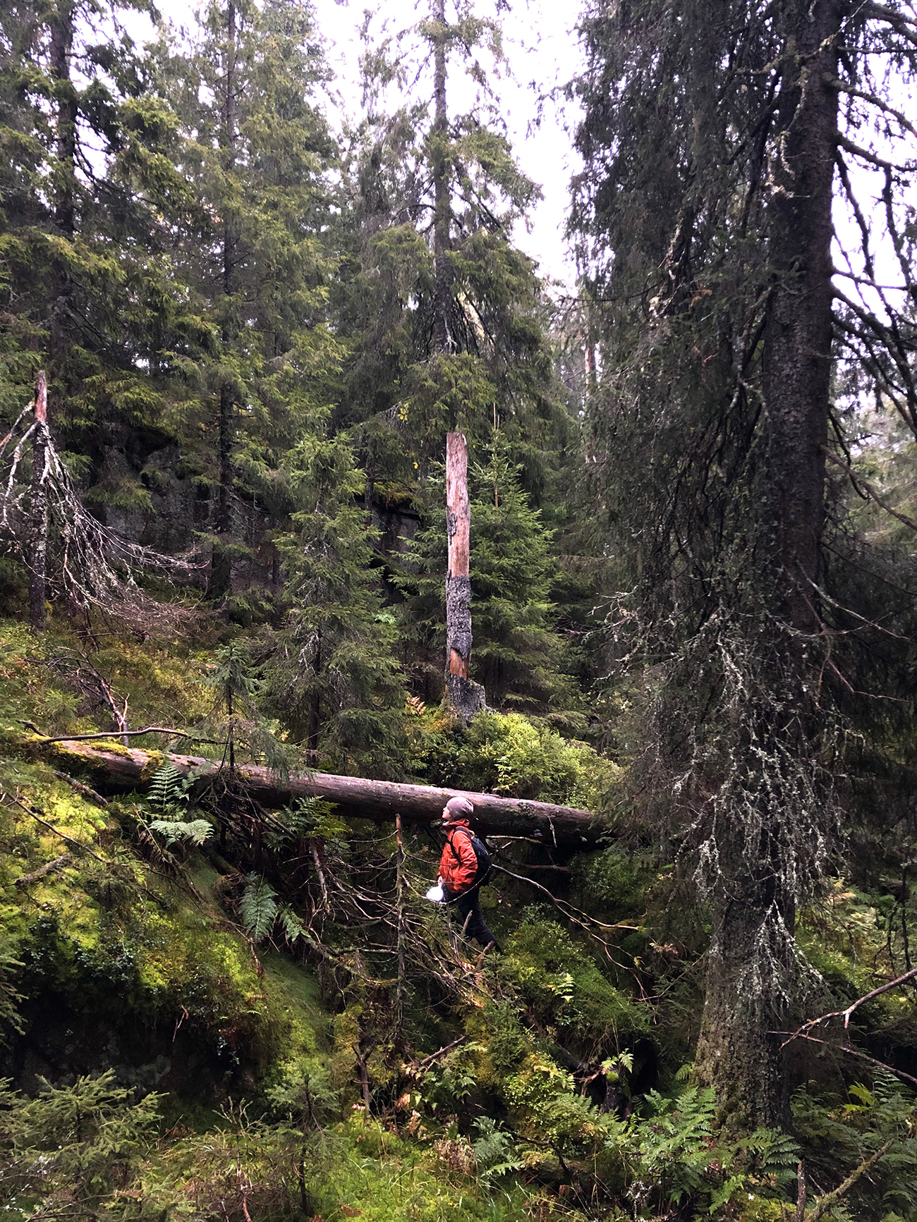 Fra kartlegging med Naturvernforbundet i gammelskog ved Slottsåsen i Nordmarka.