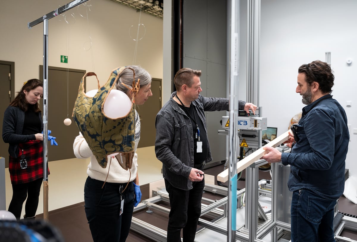 Klare for røntgenfotografering av et snøreliv fra 1790-årene.