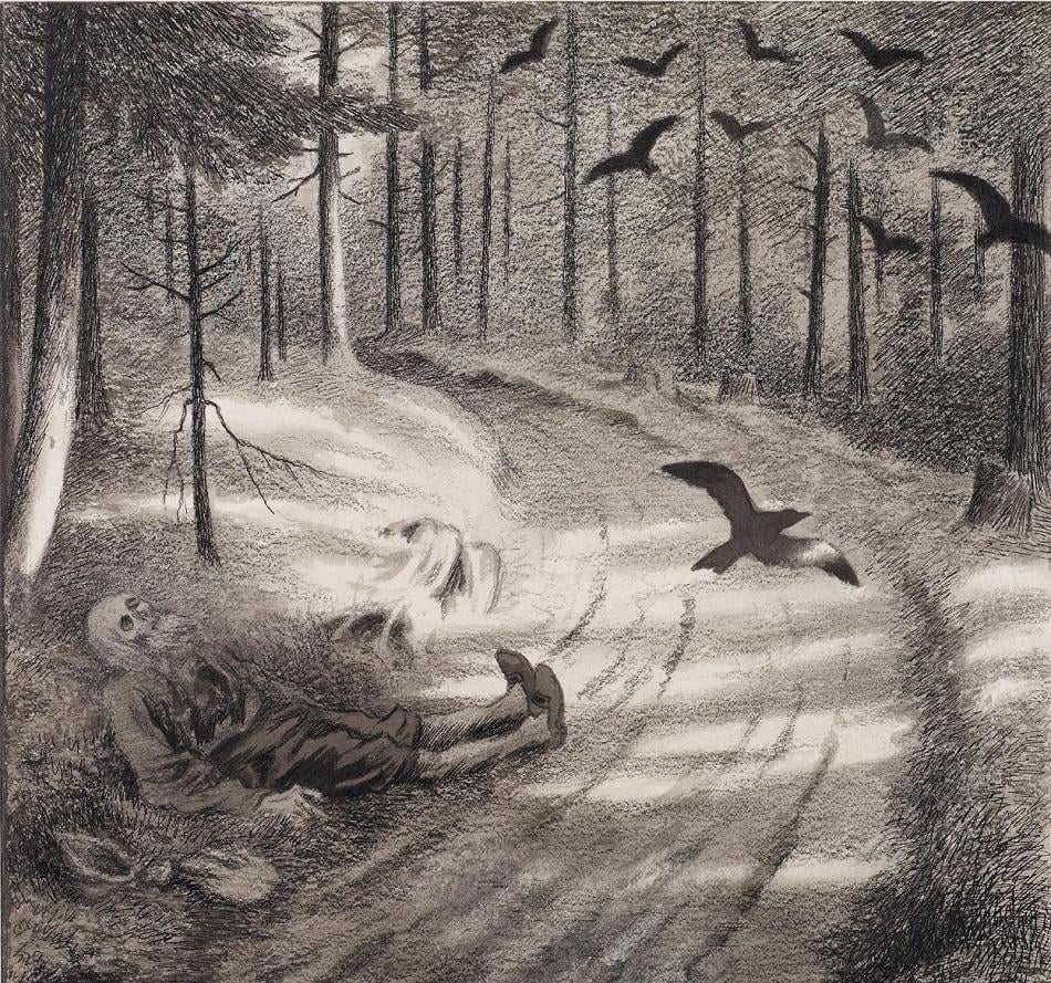 Theodor Kittelsen, «Pesta farer landet rundt», 1904.