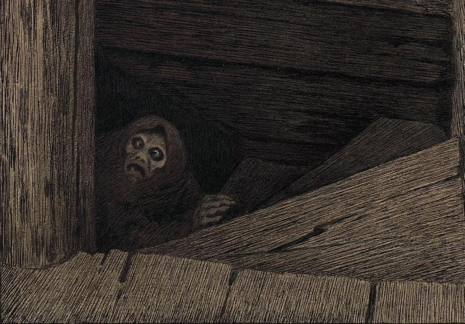 Theodor Kittelsen, «Pesta i trappen» (utstnitt), mellom 1894 og 1896.