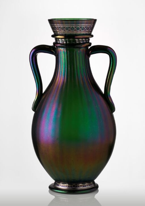 Vase Kunstnere: J & L Lobmeyr (Produsent) Ukjent Datering: 1880 Betegnelse: Vase Utstilt i: Rom 023 Samlingspresentasjonen - Materialer og ansvar Verksinfo Datering: 1880 Betegnelse: Vase Materiale og teknikk: Blåst, farvet glass med iriserende overflate og håndmalt sølvdekor Teknikk: Blåsing Dekorteknikk: Farvet glass Håndmalt Materiale: Glass Mål: H 17,2 cm Bredde: 8,7 cm Diameter: 8,5 cm Emneord: Dekorativ gjenstand Bordutstyr Kunstindustri Klassifikasjon: 323.6 - Glassproduksjon 353.6 - Pyntegjenstander, løse Stilperiode: Historisme Produksjonssted: Bøhmen Tsjekkia Inventarnr.: OK-01434 Registreringsnivå: Enkeltobjekt Ervervelse: Kjøpt 1880 Eier og samling: Stiftelsen Kunstindustrimuseet, Designsamlingene Foto: Larsen, Frode Utforsk lignende verk fra samlingen J & L Lobmeyr Ukjent Vase 1880 Gutter som tjærer en båt, Nevlunghavn Shape no. 2123 Vase Kopp med skål Mugge Overdel Knipling Knipling Knipling Knipling Knipling Gårdstun, Gol i Hallingdal