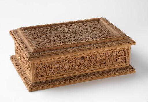 Syskrin Kunstner: Lars Kinsarvik (Produsent) Datering: 1886 Betegnelse: Syskrin Ikke utstilt Kunstner/produsent Lars Kinsarvik Treskjærer og rosemaler Født 08.09.1846 i Kinsarvik, død 21.06.1925 i Kinservig Verksinfo Datering: 1886 Betegnelse: Syskrin Materiale og teknikk: Relieffskåret bjørk Teknikk: Liming Hengsling Dekorteknikk: Relieffskjæring Profilering Materiale: Bjørk Mål: H 12 x B 34,5 x D 22,8 cm Dybde: 0,2 cm Emneord: Beholder Folkekunst Klassifikasjon: 415 - Kar og beholdere 531.41 - Treskjæring Produksjonssted: Hardanger Norge Inventarnr.: OK-02739 Registreringsnivå: Enkeltobjekt Ervervelse: 1886 Eier og samling: Stiftelsen Kunstindustrimuseet, Designsamlingene Foto: Larsen, Frode/Frode Larsen Utforsk lignende verk fra samlingen Lars Kinsarvik Syskrin 1886 Portrett av skuespilleren B. K. Kopp med skål Spisestuestol Gissur den gamle utfordrer hunnerne på kong Angantyrs vegne Mugge Skap Japansk lykt Så lo de så inderlig godt begge to Nerudakvartetten. Skisse til Musikk i atelieret Herme av en gud "Mæ-æ-æ!" sa geita "Du får slippe ned den kampesteinen, du tok ved fjøsdøra," sa ørnen