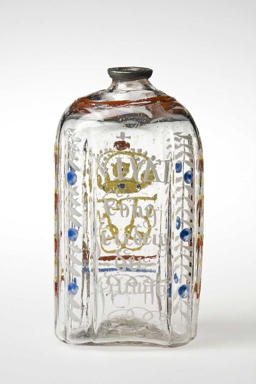 Blåst glass med malt dekor.