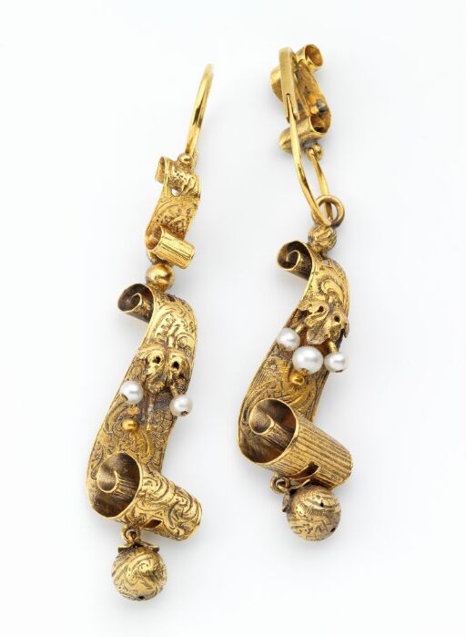 Øredobb Kunstner: Uidentifisert Datering: Trolig 1844 Betegnelse: Øredobb Utstilt i: Rom 010 Samlingspresentasjonen - Politikk og design Verksinfo Datering: Trolig 1844 Betegnelse: Øredobb Materiale og teknikk: Støpt og falset gull, siselert og gravert dekor, perler Teknikk: Pressing Støping Klipping Dekorteknikk: Gravering Siselering Lodding Materiale: Gull Perle Mål: L 6,1 cm x B 1,2 cm Lengde: 6,1 cm Bredde: 1,2 cm Emneord: Smykke Klassifikasjon: 301 - Smykker 326 - Metallhåndverk 326.81 - Gullsmed 585 - Bryllup Produksjonssted: Nord-Europa Inventarnr.: OK-10734B Registreringsnivå: Enkeltobjekt Ervervelse: Gave 1921 Eier og samling: Stiftelsen Kunstindustrimuseet, Designsamlingene Foto: Larsen, Frode "Øredobb" relaterer til: Smykkesett Utforsk lignende verk fra samlingen Uidentifisert Øredobb Trolig 1844 Trestudie Engel Marie Delphin f. Lange Hjemvendende rekrutter Italiensk by Italiensk villahage med utsikt Teskje Ulnes kirke i Valdres Bondekone fra Telemark Torbjørg Olsdatter Bolkesjø Italiensk landskap To landskapsriss Landskap ved Nysø