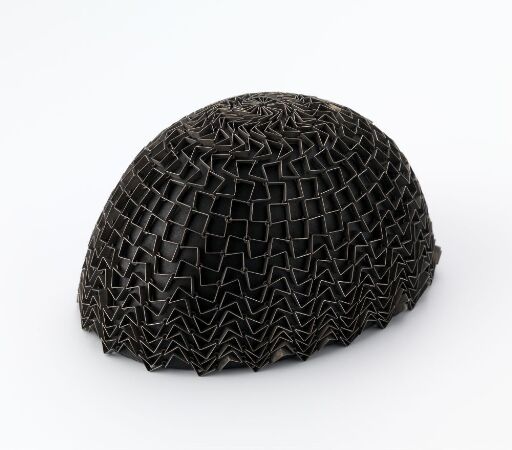 Lue Kunstner: Tone Vigeland Datering: 1992 Betegnelse: Lue Utstilt i: Rom 027 Samlingspresentasjonen - Bærbar kunst Kunstner/produsent Tone Vigeland Designer, Smykkekunstner Født 06.08.1938 i Oslo, død 18.03.2024 Verksinfo Datering: 1992 Betegnelse: Lue Materiale og teknikk: Bøyde metallremser hektet sammen med metallringer, bemalt gips Materiale: Sølv Gips Mål: L 21,5 cm Høyde: 11,2 cm Bredde: 15 cm Emneord: Smykke Drakttilbehør Kunsthåndverk Klassifikasjon: 301 - Smykker 326.81 - Gullsmed 531 - Kunsthåndverk og formgiving Produksjonssted: Norge Inventarnr.: OK-1993-0016 Registreringsnivå: Enkeltobjekt Ervervelse: Gave 1993 Eier og samling: Stiftelsen Kunstindustrimuseet, Designsamlingene Foto: Larsen, Frode Opphavsrett: © Vigeland, Tone/BONO Utforsk lignende verk fra samlingen Tone Vigeland Lue 1992 Vinservise Vinglass Kopp med skål Krone Ny bygning for Tana museum Reisen Morandis fönster II Napp Stasjon Trinidad Amor Fati Teater